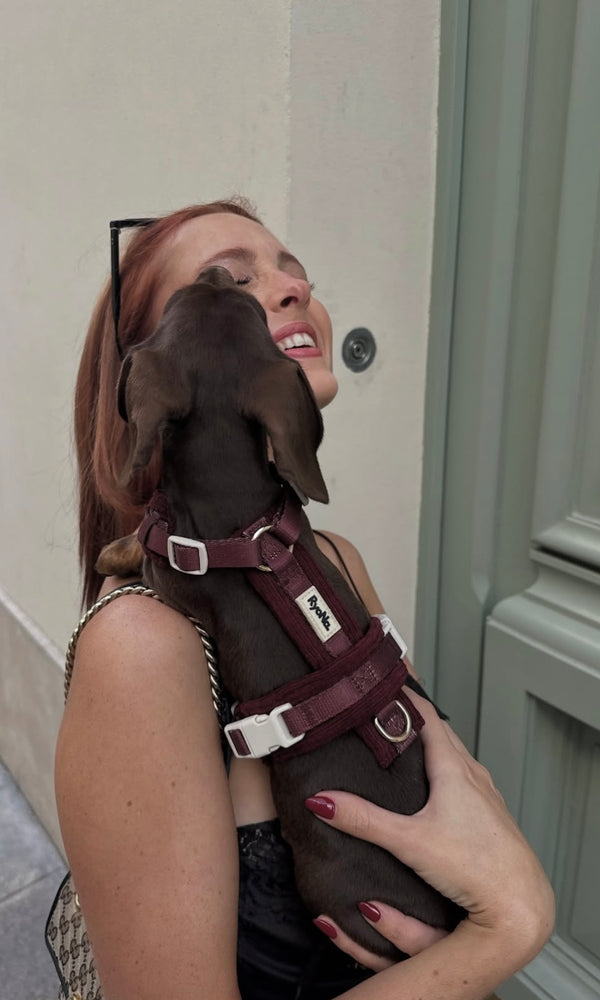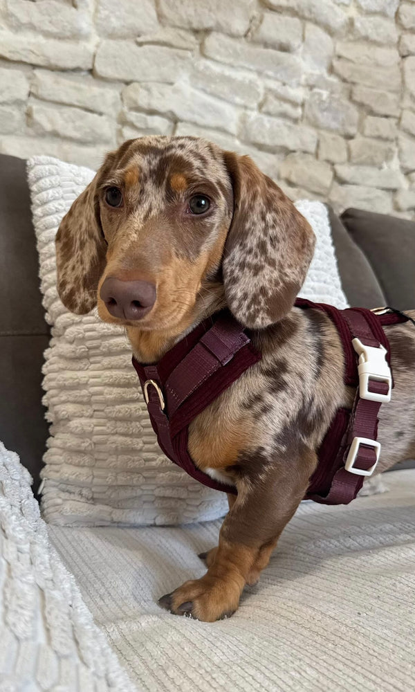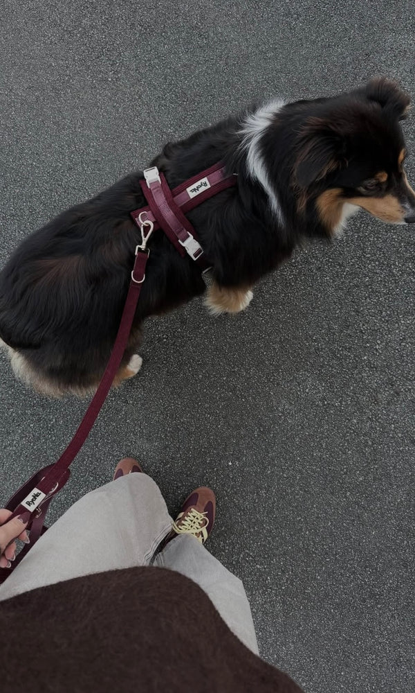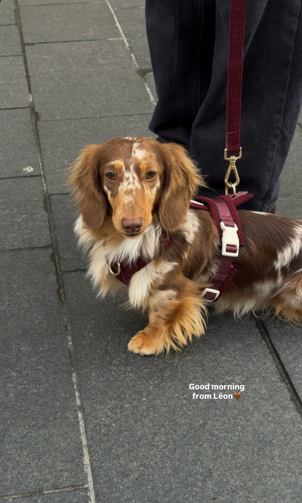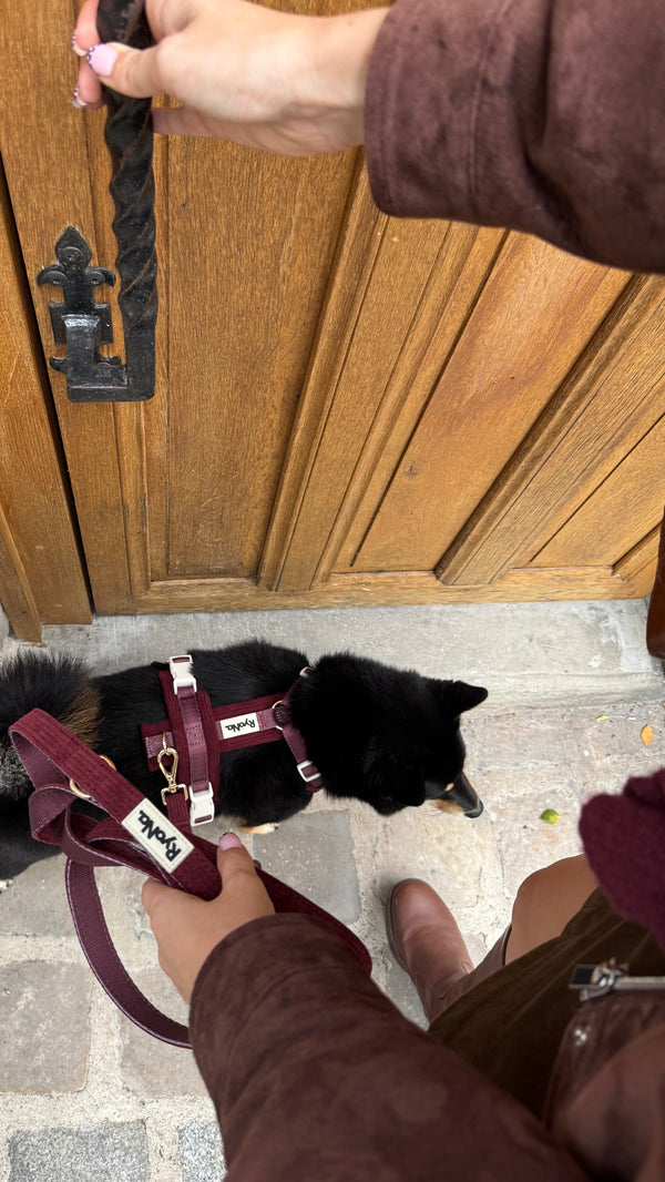 Vérification : Contrôlez régulièrement l'état général du harnais ou de la laisse (coutures, attaches, mousquetons), en particulier si votre chien est très actif ou tire fortement.
